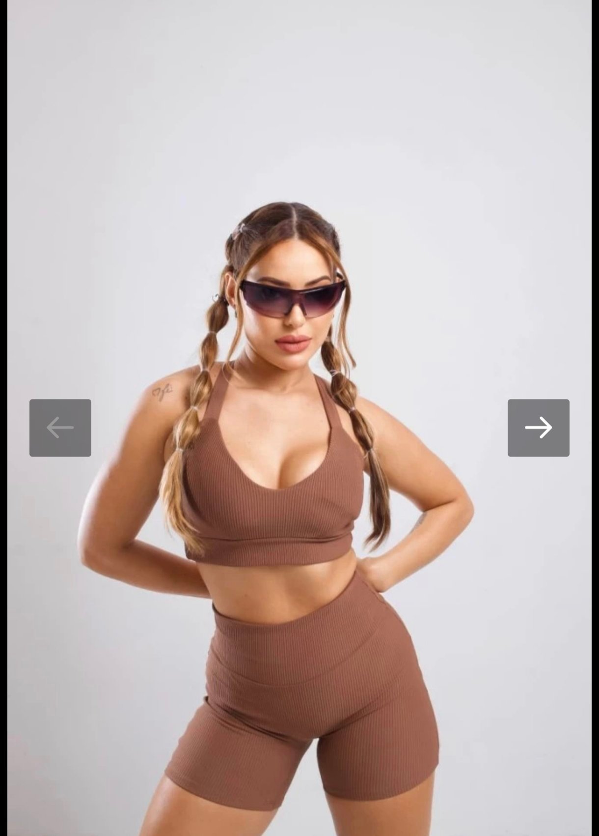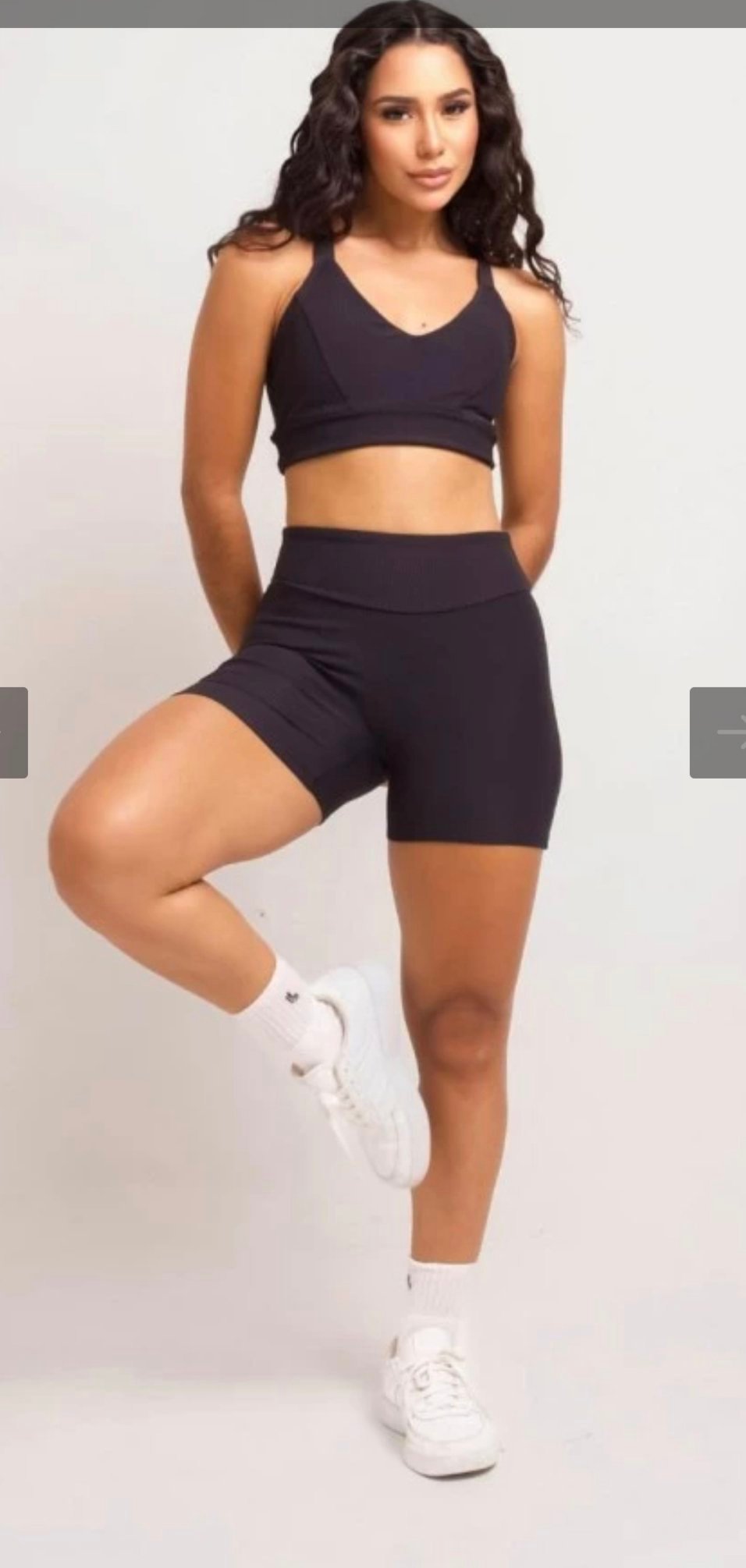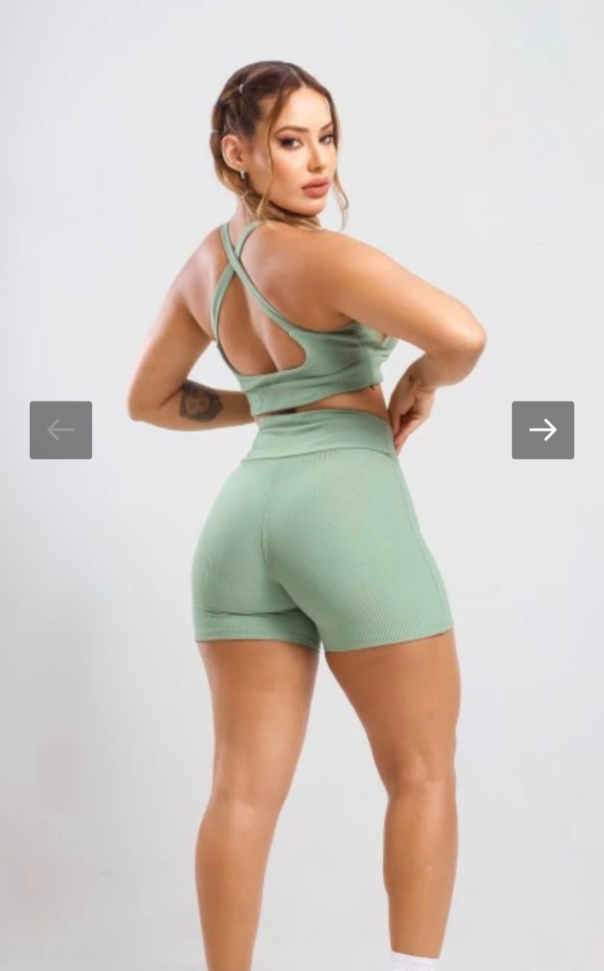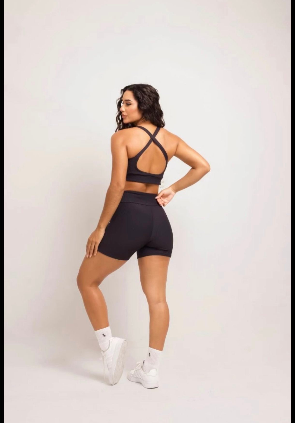 conjunto maravilhoso canelado nacional, não marca, shirts sem costura frontal/ top com bojo e aberto nas costas.